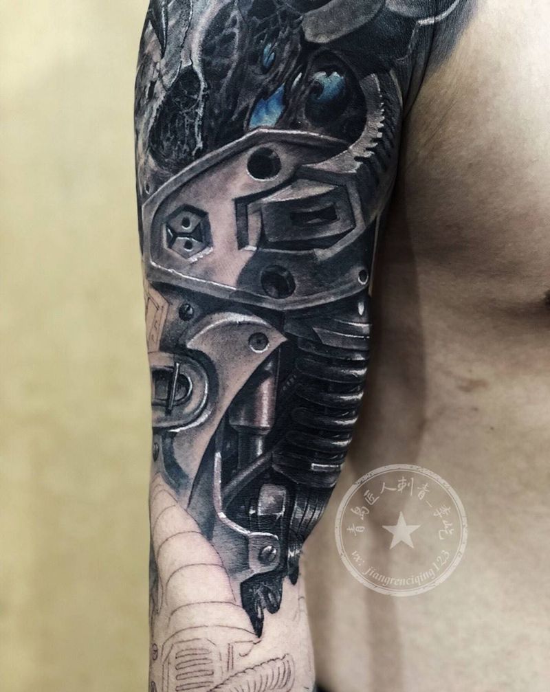 机械臂遮盖纹身图片_手臂欧美写实新传统机械臂纹身图案