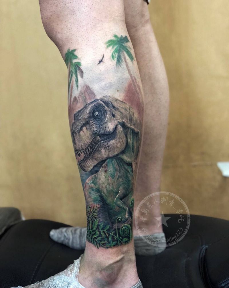 当前位置: 首页 >山东省青岛市纹身店-匠人刺青纹身图案>暴龙小腿 恢复后纹身图片_腿部新传统欧美写实暴龙恐龙霸王龙纹身图案