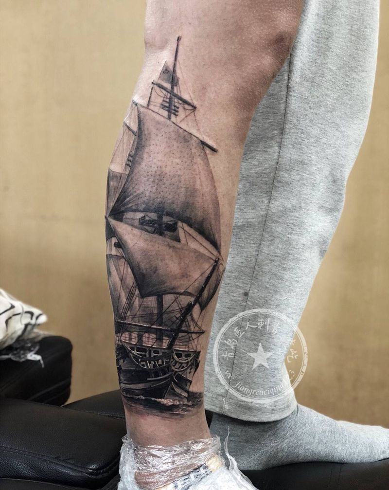当前位置: 首页 >山东省青岛市纹身店-匠人刺青纹身图案>帆船纹身图片_腿部新传统欧美写实船纹身图案