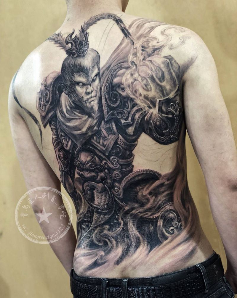 齐天大圣5 孙悟空纹身图片_背部欧美写实孙悟空猴子齐天大圣纹身图案