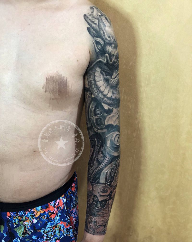 当前位置: 首页 >山东省青岛市纹身店-匠人刺青纹身图案>机械雕龙臂纹身图片_手臂欧美写实机械石雕花臂纹身图案