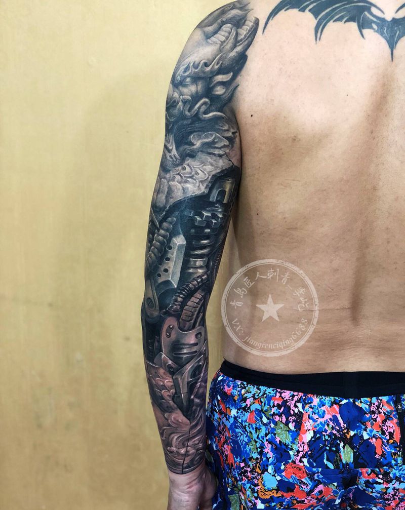 当前位置: 首页 >山东省青岛市纹身店-匠人刺青纹身图案>机械雕龙臂纹身图片_手臂欧美写实机械石雕花臂纹身图案