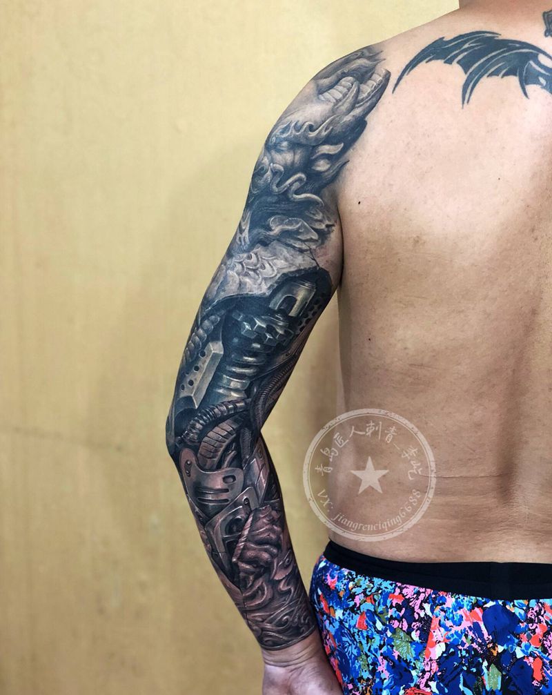 当前位置: 首页 >山东省青岛市纹身店-匠人刺青纹身图案>机械雕龙臂纹身图片_手臂欧美写实机械石雕花臂纹身图案