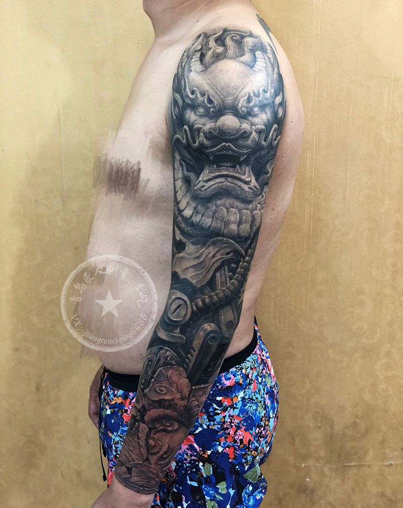当前位置: 首页 >山东省青岛市纹身店-匠人刺青纹身图案>机械雕龙臂纹身图片_手臂欧美写实机械石雕花臂纹身图案