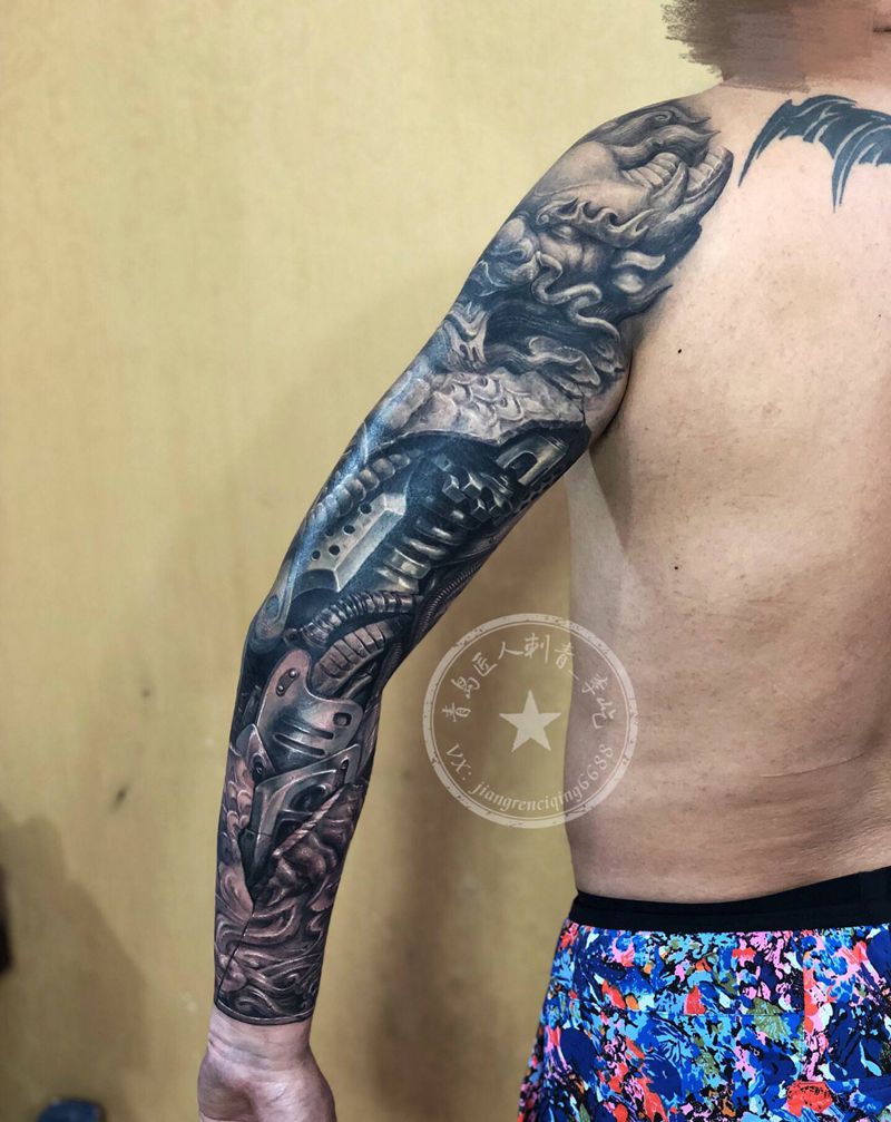 当前位置: 首页 >山东省青岛市纹身店-匠人刺青纹身图案>机械雕龙臂纹身图片_手臂欧美写实机械石雕花臂纹身图案