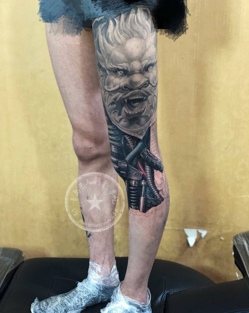 当前位置: 首页 >山东省青岛市纹身店-匠人刺青纹身图案>机械雕龙腿纹身图片_腿部欧美写实机械石雕花腿纹身图案