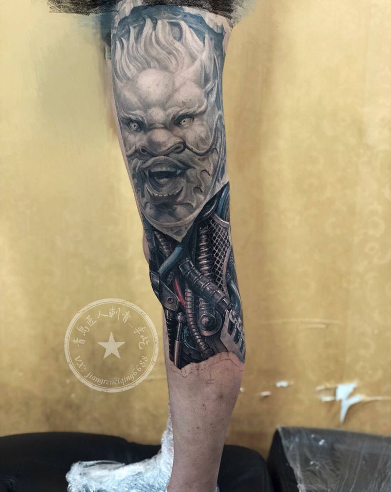 当前位置: 首页 >山东省青岛市纹身店-匠人刺青纹身图案>机械雕龙腿纹身图片_腿部欧美写实机械石雕花腿纹身图案