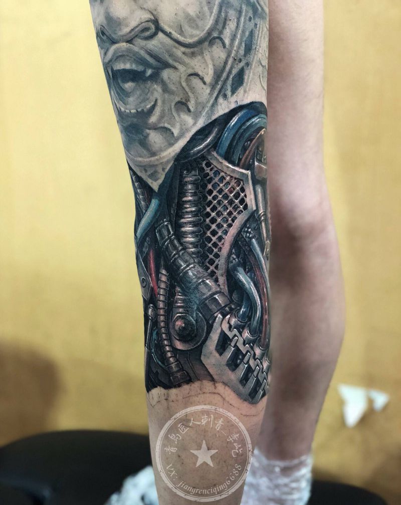 当前位置: 首页 >山东省青岛市纹身店-匠人刺青纹身图案>机械雕龙腿纹身图片_腿部欧美写实机械石雕花腿纹身图案