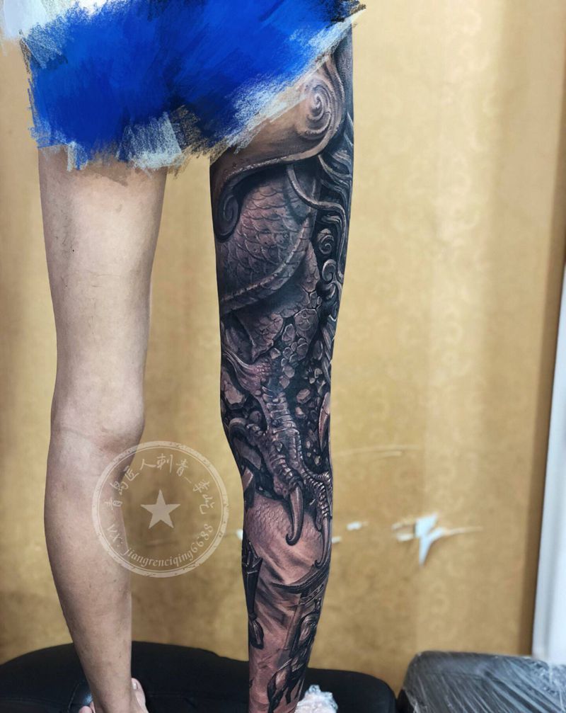 当前位置: 首页 >山东省青岛市纹身店-匠人刺青纹身图案>石雕龙花腿纹身图片_腿部欧美写实花腿石雕龙纹身图案