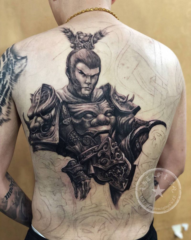 齐天大圣6 未完成纹身图片_背部欧美写实齐天大圣猴子孙悟空纹身图案