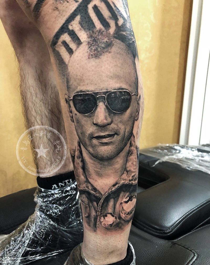 肖像花腿 教父未完成纹身图片_腿部欧美写实教父肖像花腿纹身图案