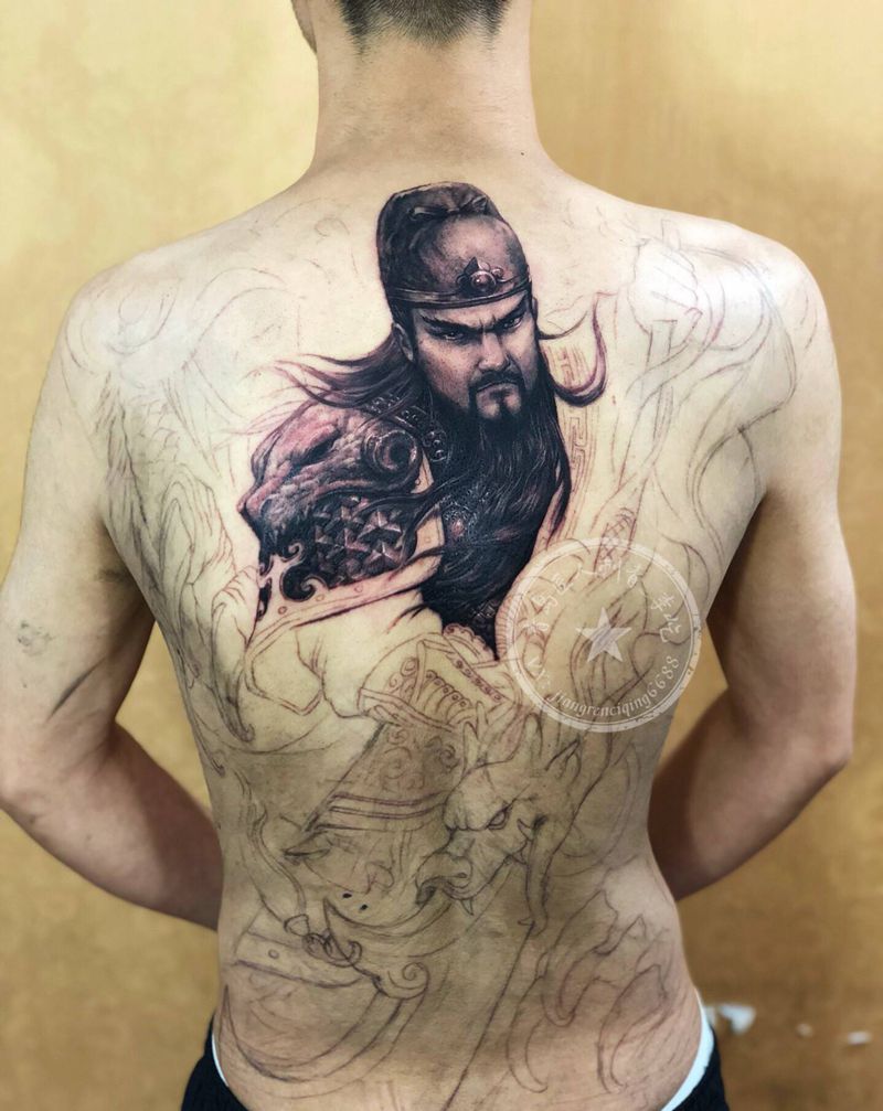 武圣 关公纹身图片_背部欧美写实关公纹身图案