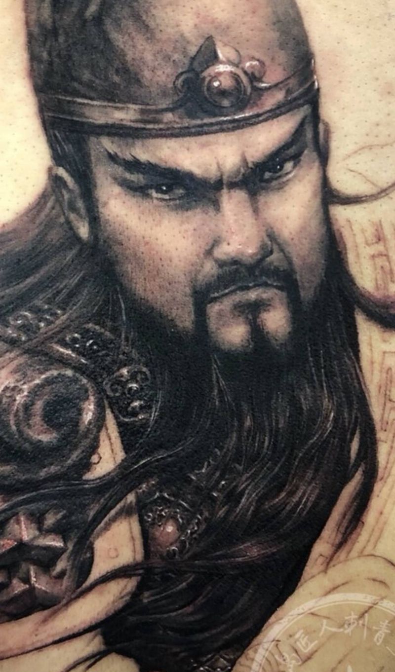 武圣 关公纹身图片_背部欧美写实关公纹身图案