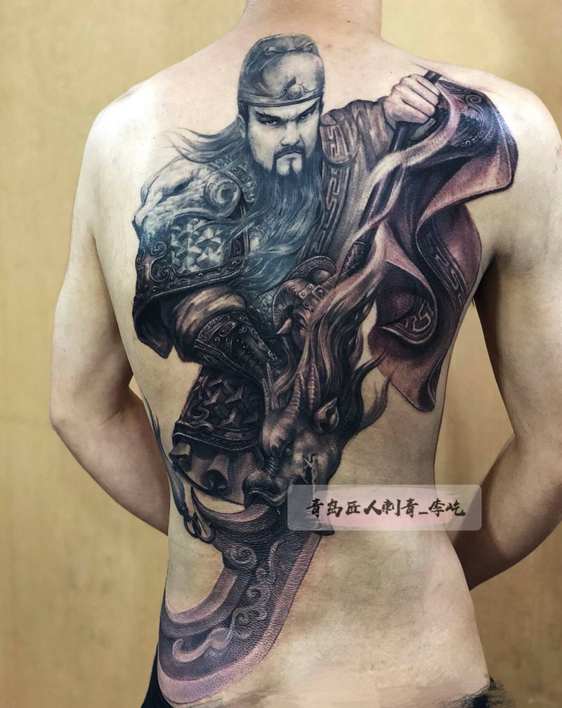 武圣关羽 未完成纹身图片_背部新传统欧美写实关羽关公纹身图案