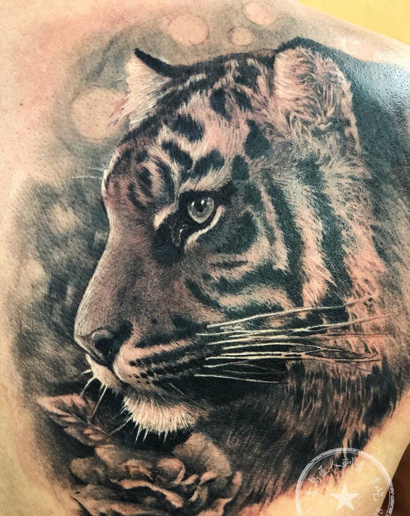 当前位置: 首页 >山东省青岛市纹身店-匠人刺青纹身图案>虎纹身图片_背部欧美写实老虎纹身图案