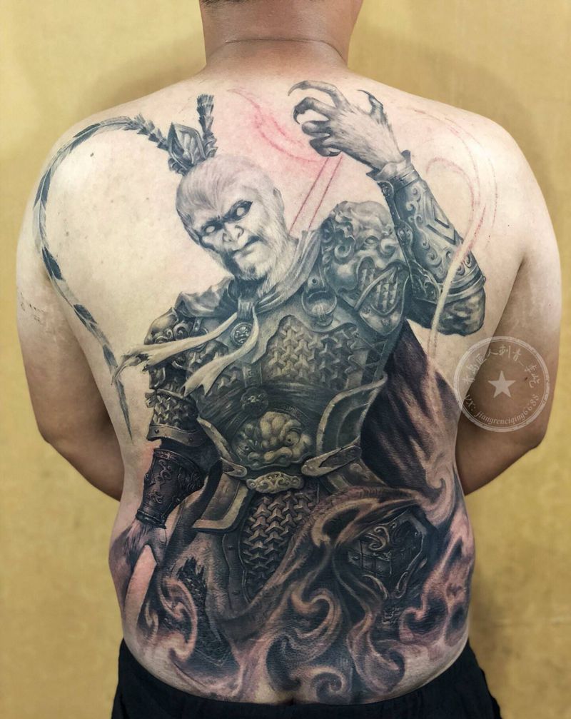 当前位置: 首页 >山东省青岛市纹身店-匠人刺青纹身图案>齐天大圣3孙悟空未完成纹身图片_背部欧美写实齐天大圣孙悟空满背纹身图案