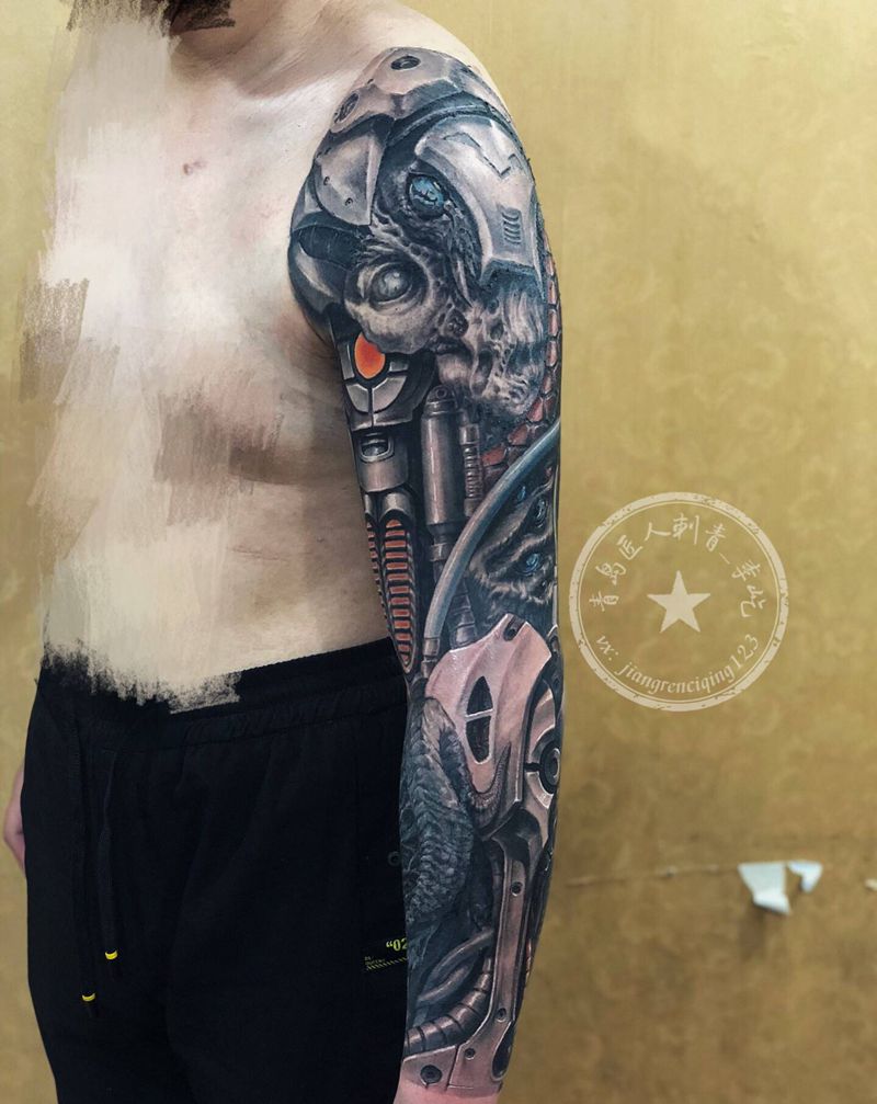 生化机械臂纹身图片_手臂新传统欧美写实机械生化纹身图案