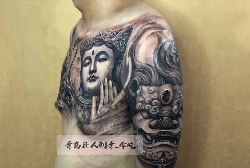 当前位置: 首页 >山东省青岛市纹身店-匠人刺青纹身图案>大圣 文殊菩萨纹身图片_胸部新传统欧美写实大圣文殊菩萨纹身图案