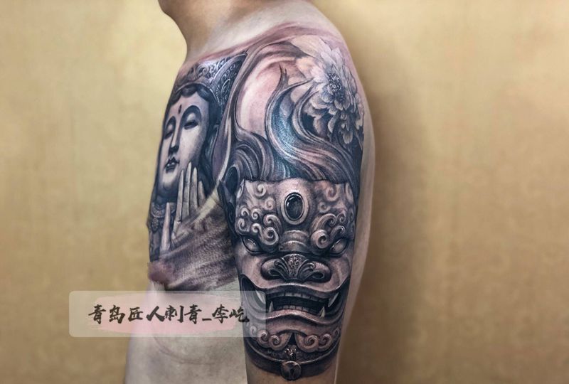 当前位置: 首页 >山东省青岛市纹身店-匠人刺青纹身图案>大圣 文殊菩萨纹身图片_胸部新传统欧美写实大圣文殊菩萨纹身图案