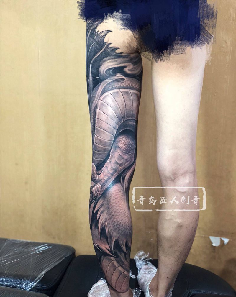 • T网红王老大花腿龙纹身图片_腿部新传统纹身图案