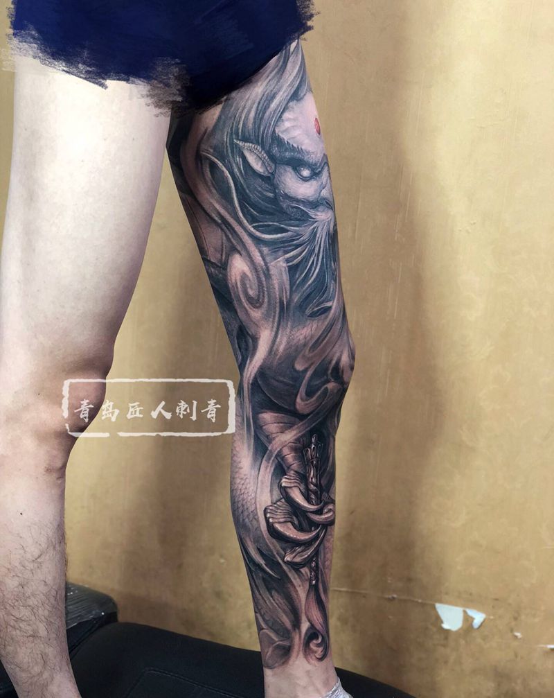 • T网红王老大花腿龙纹身图片_腿部新传统纹身图案