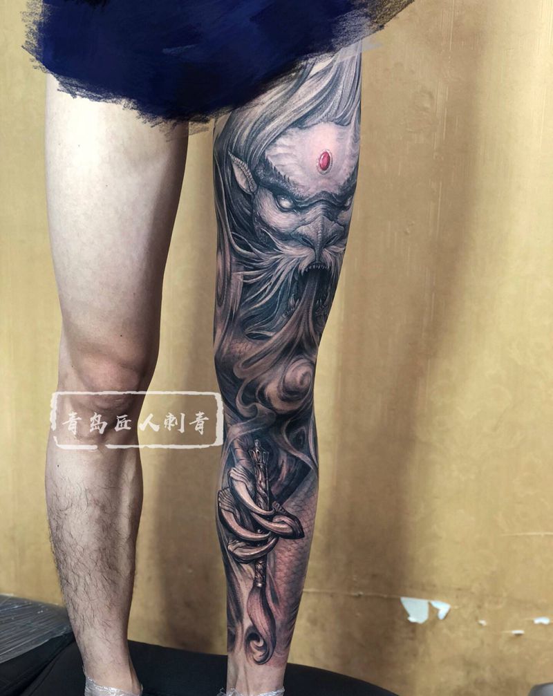 • T网红王老大花腿龙纹身图片_腿部新传统纹身图案