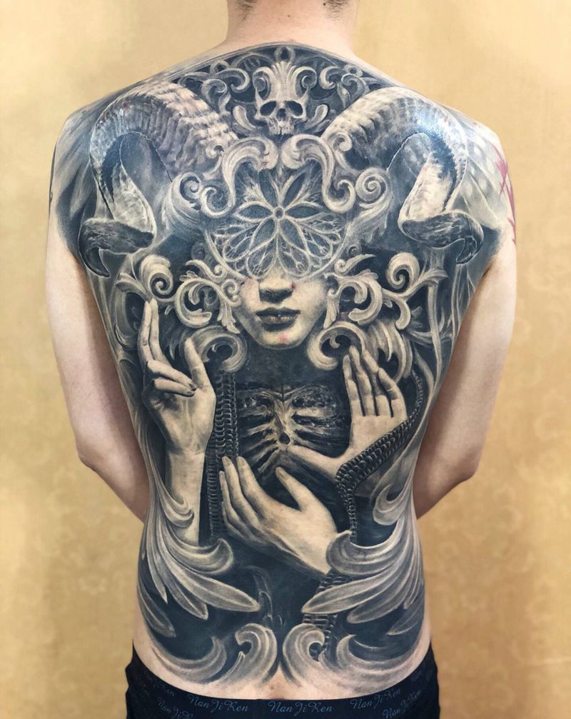 当前位置: 首页 >山东省青岛市纹身店-匠人刺青纹身图案>欧美背恢复后纹身图片_背部新传统欧美写实欧美纹身图案