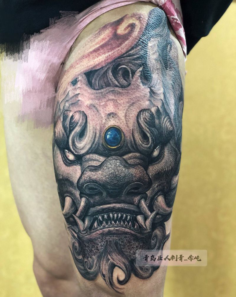 当前位置: 首页 >山东省青岛市纹身店-匠人刺青纹身图案>大腿龙头纹身图片_腿部新传统欧美写实龙纹身图案