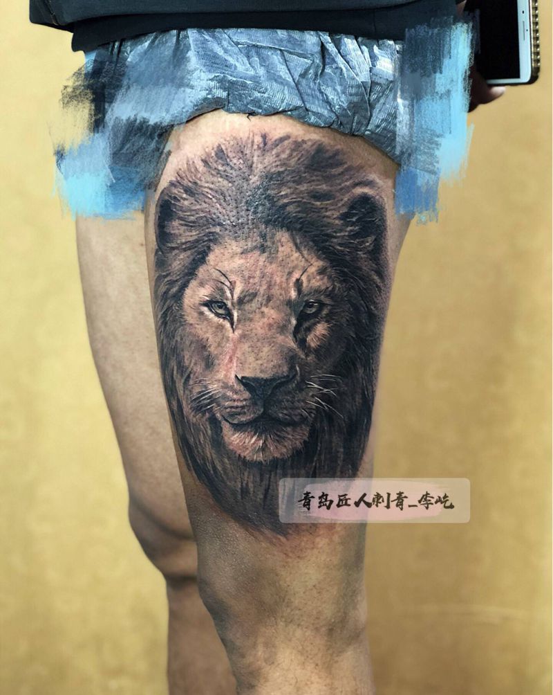 当前位置: 首页 >山东省青岛市纹身店-匠人刺青纹身图案>狮子王纹身图片_腿部新传统欧美写实狮子纹身图案