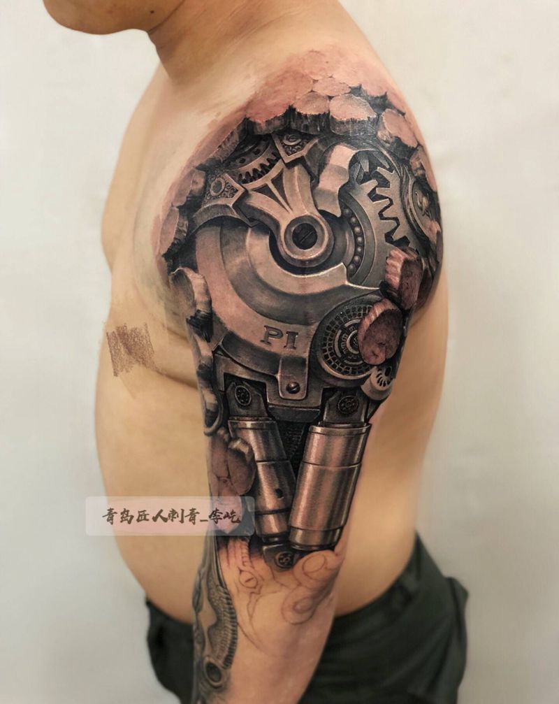 机械臂 未完成纹身图片_手臂新传统欧美写实机械纹身图案