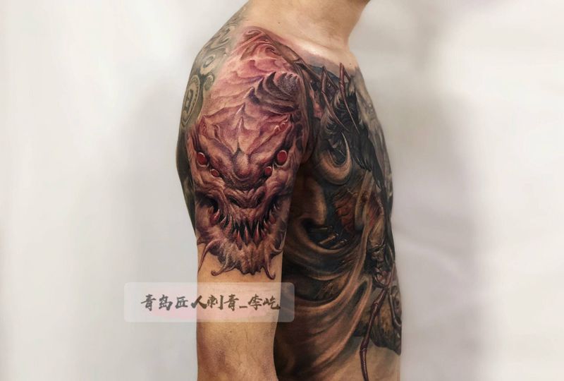• 纹身吧推荐的披肩图腾半胛纹身图案作品展示