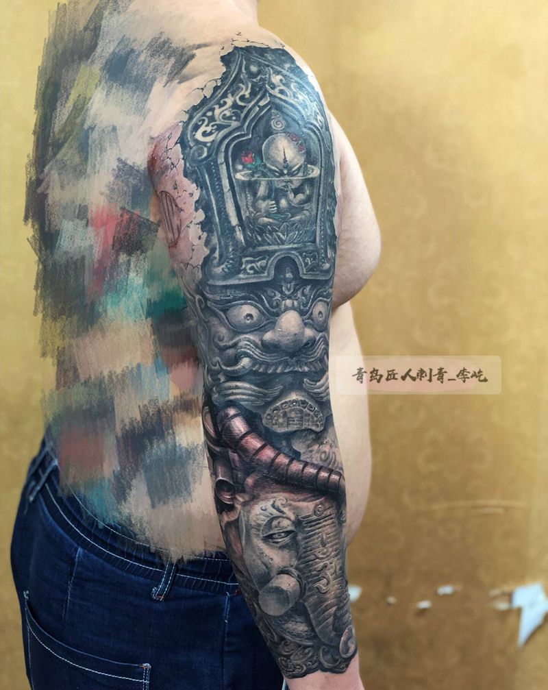 当前位置: 首页 >山东省青岛市纹身店-匠人刺青纹身图案>石雕机械臂纹身图片_手臂新传统欧美写实石雕机械纹身图案