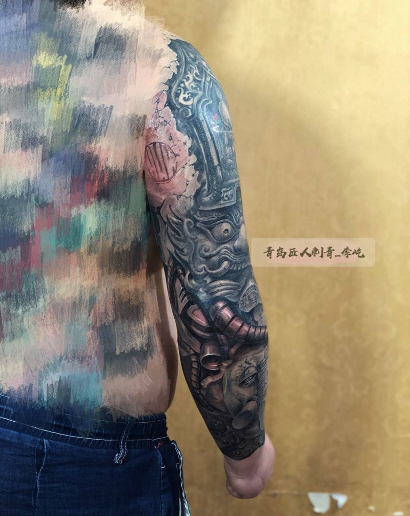 当前位置: 首页 >山东省青岛市纹身店-匠人刺青纹身图案>石雕机械臂纹身图片_手臂新传统欧美写实石雕机械纹身图案