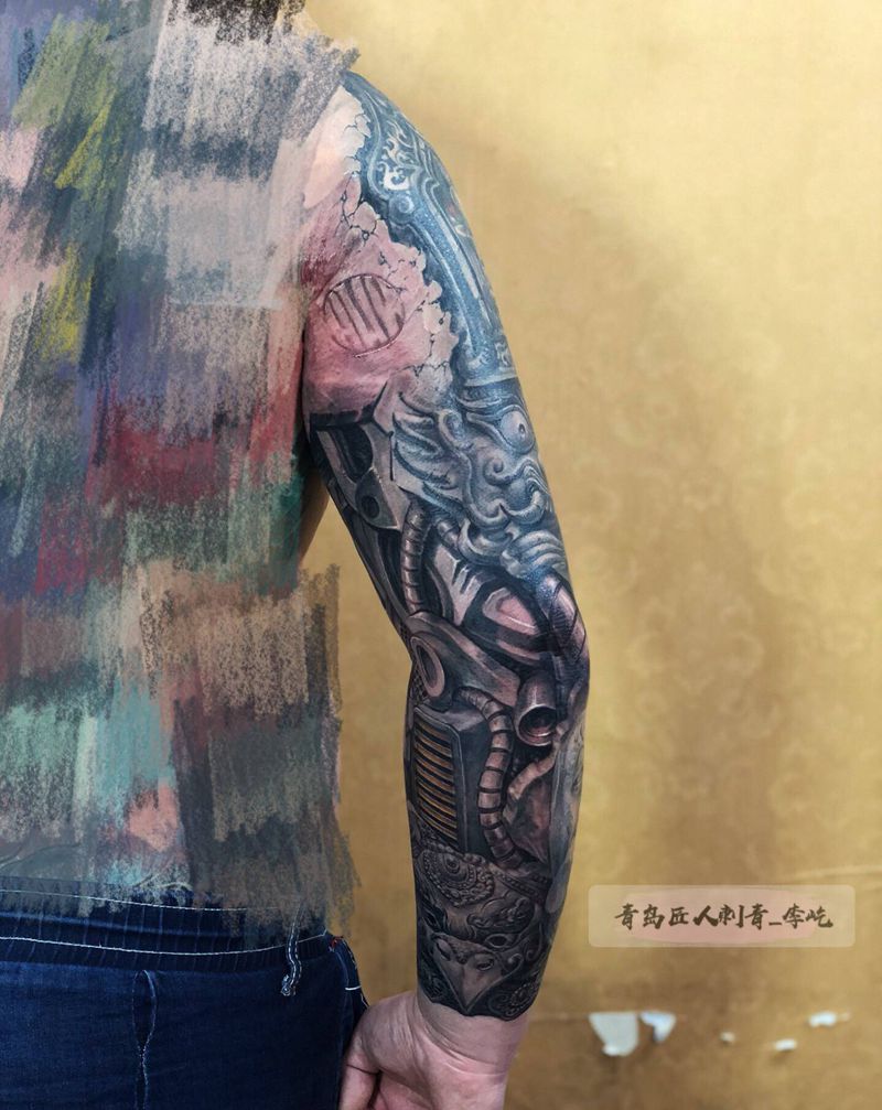 当前位置: 首页 >山东省青岛市纹身店-匠人刺青纹身图案>石雕机械臂纹身图片_手臂新传统欧美写实石雕机械纹身图案