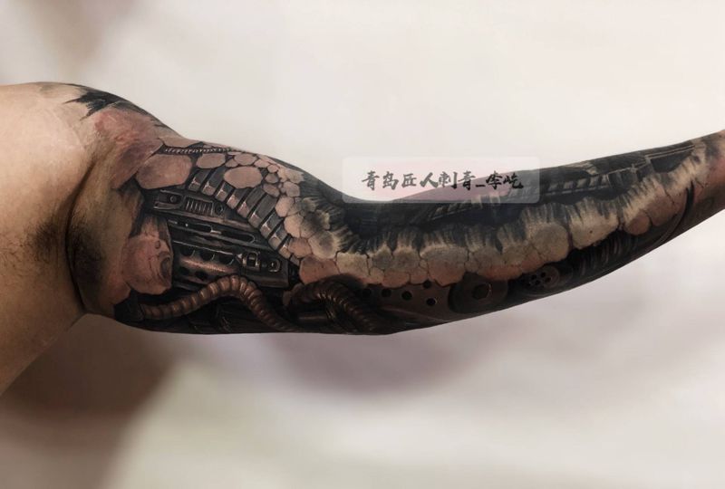 当前位置: 首页 >山东省青岛市纹身店-匠人刺青纹身图案>机械 机械臂纹身图片_手臂欧美写实新传统机械纹身图案