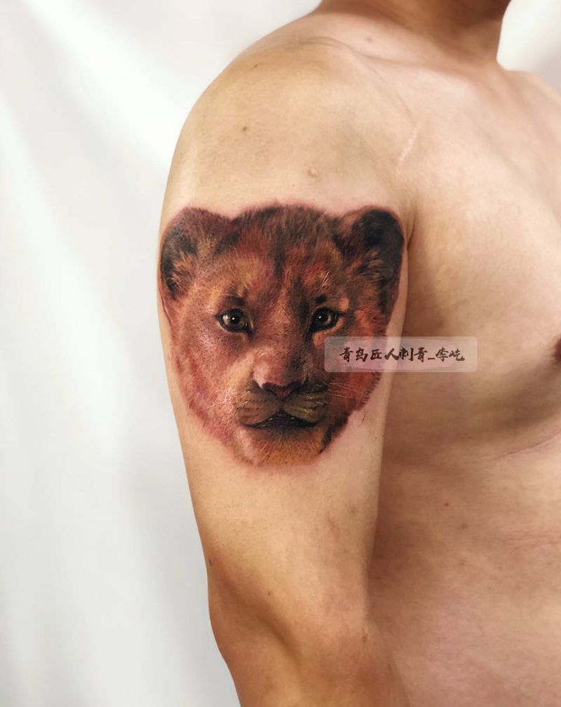 当前位置: 首页 >山东省青岛市纹身店-匠人刺青纹身图案>狮子 彩色 狮子王纹身图片_手臂欧美写实新传统动物狮子彩色纹身图案