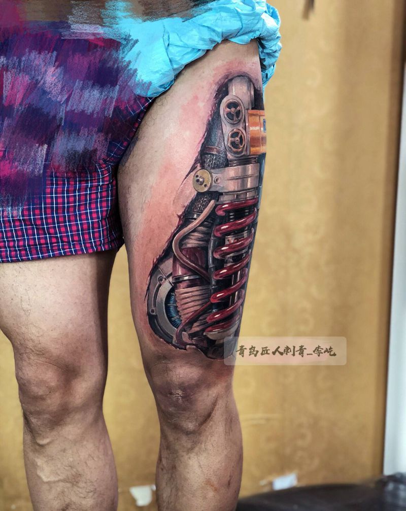 当前位置: 首页 >山东省青岛市纹身店-匠人刺青纹身图案>全彩机械纹身图片_腿部新传统欧美写实机械纹身图案