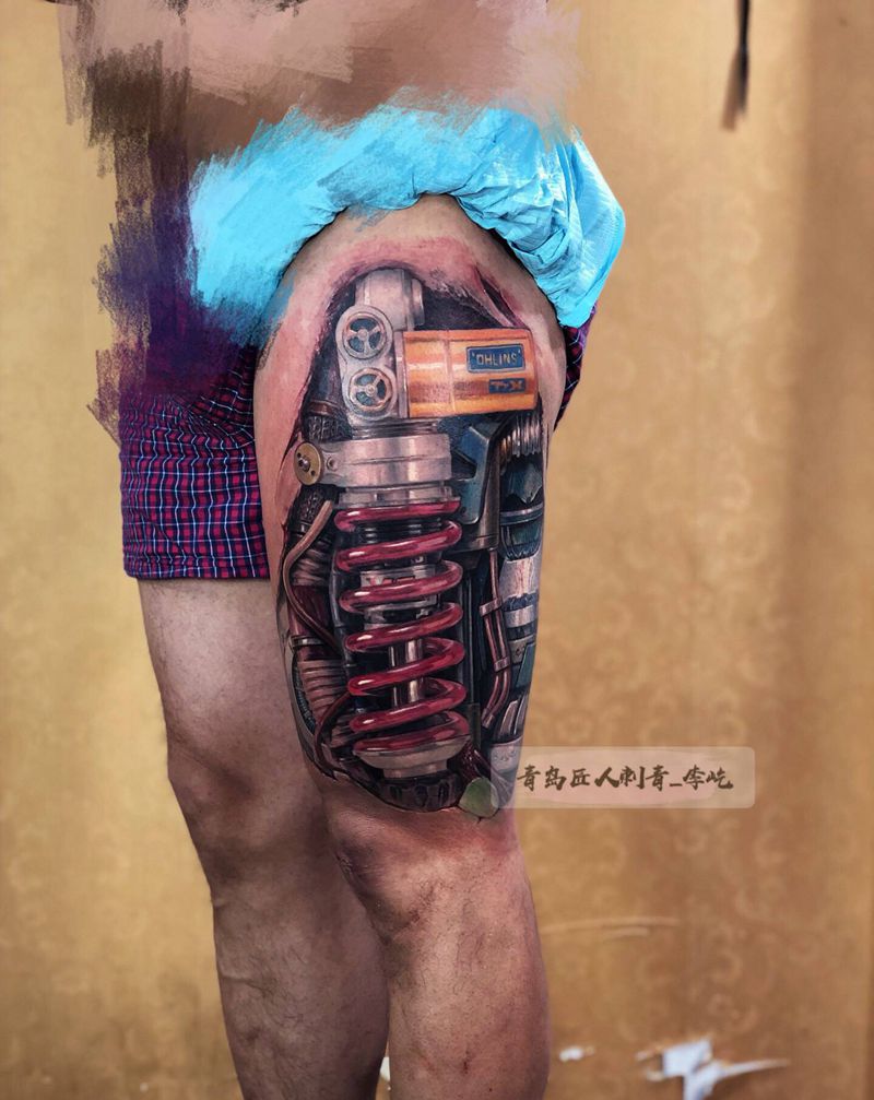当前位置: 首页 >山东省青岛市纹身店-匠人刺青纹身图案>全彩机械纹身图片_腿部新传统欧美写实机械纹身图案
