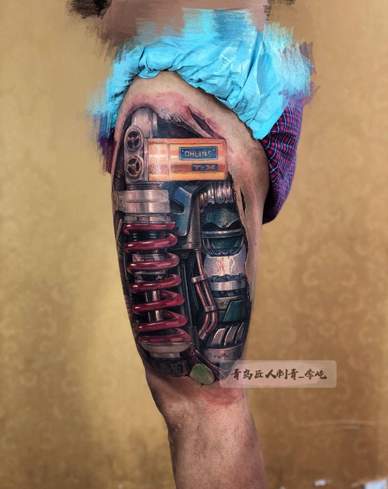 当前位置: 首页 >山东省青岛市纹身店-匠人刺青纹身图案>全彩机械纹身图片_腿部新传统欧美写实机械纹身图案