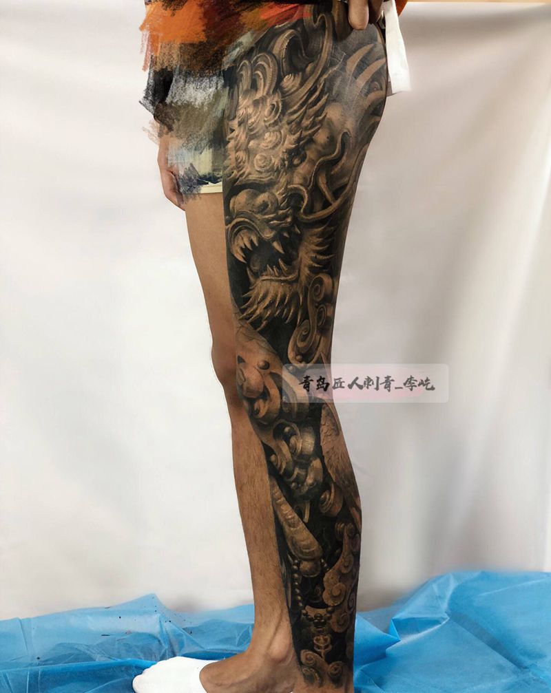 当前位置: 首页 >山东省青岛市纹身店-匠人刺青纹身图案>石雕龙恢复后纹身图片_腿部新传统欧美写实石雕龙纹身图案