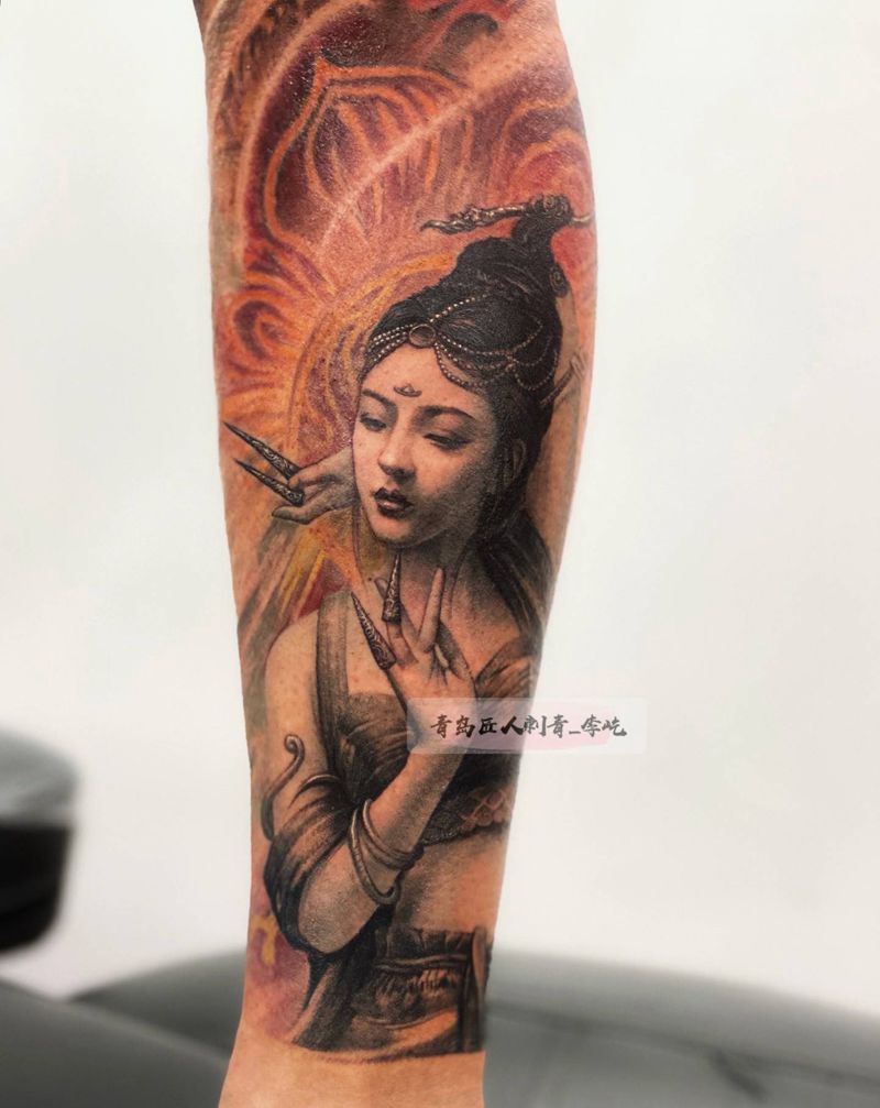 八部天龙 修罗女纹身图片_腿部欧美写实新传统修罗女女纹身图案
