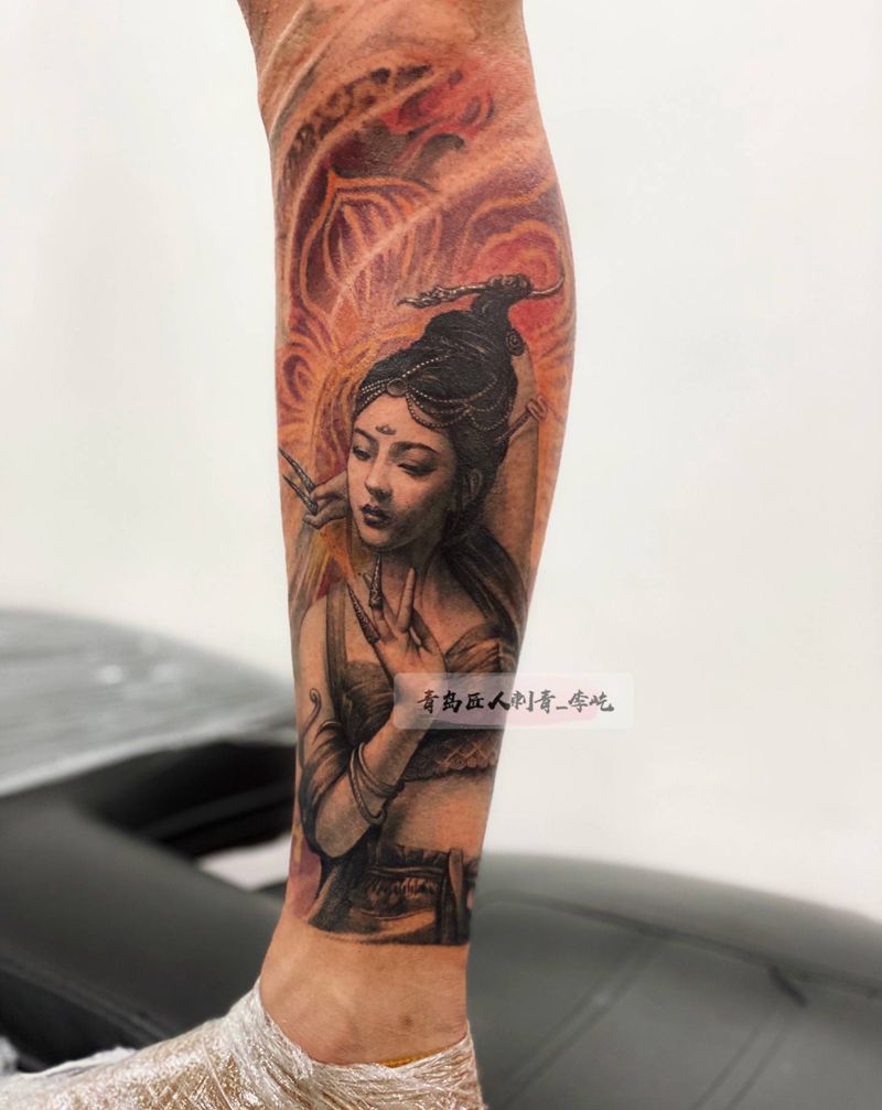 当前位置: 首页 >山东省青岛市纹身店-匠人刺青纹身图案>八部天龙 修罗女纹身图片_腿部欧美写实新传统修罗女女纹身图案