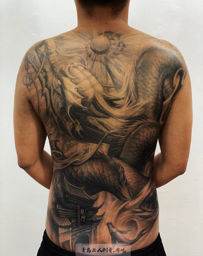 当前位置: 首页 >山东省青岛市纹身店-匠人刺青纹身图案>龙门3纹身图片_背部新传统欧美写实龙龙门鱼跃龙门纹身图案