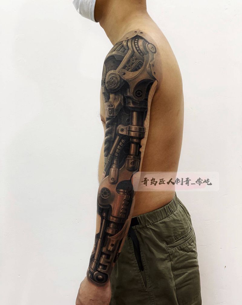 机械臂 未完成纹身图片_手臂新传统欧美写实机械臂纹身图案