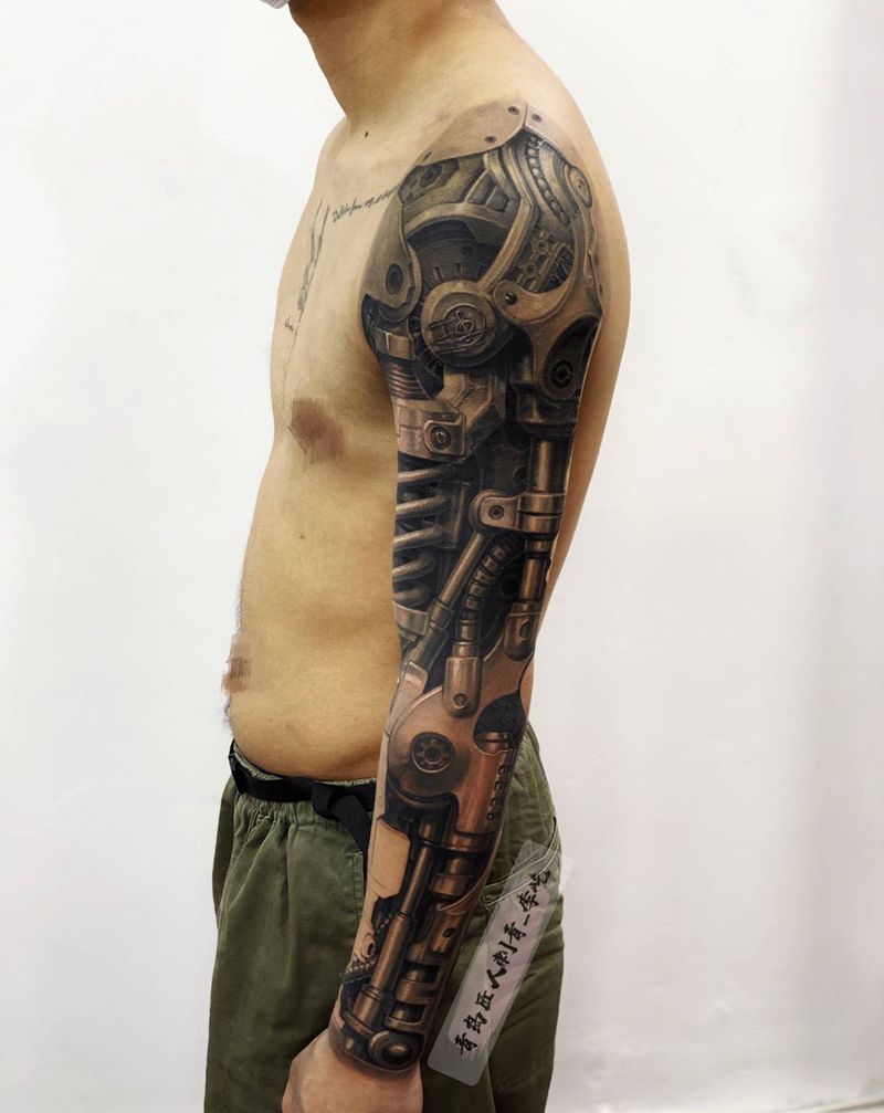 机械臂 未完成纹身图片_手臂新传统欧美写实机械臂纹身图案