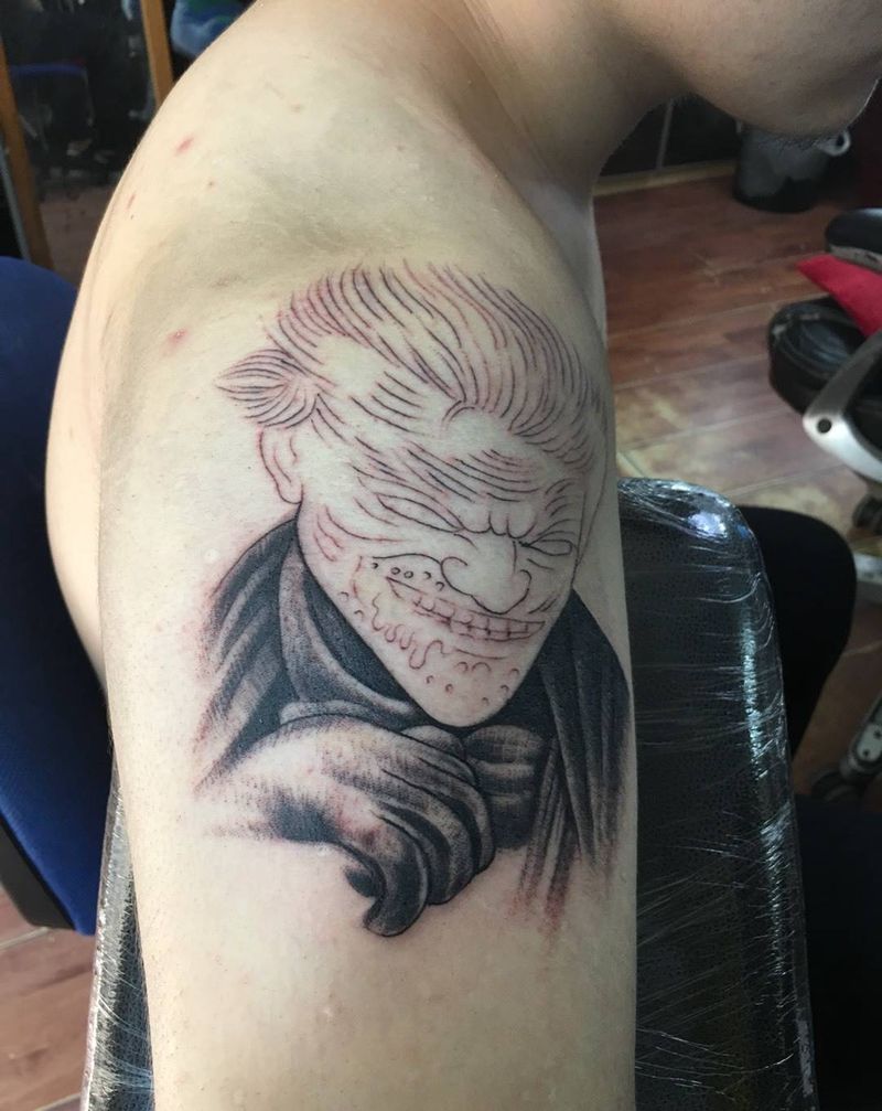 当前位置: 首页 >山东省青岛市纹身店-九纹龙刺青纹身图案>上臂肖像纹身图片