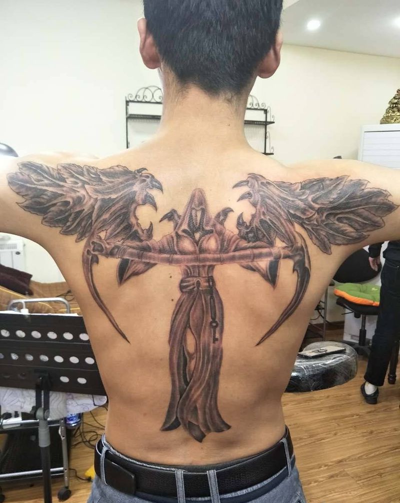 当前位置: 首页 >山东省青岛市纹身店-九纹龙刺青纹身图案>暗黑死神纹身图片