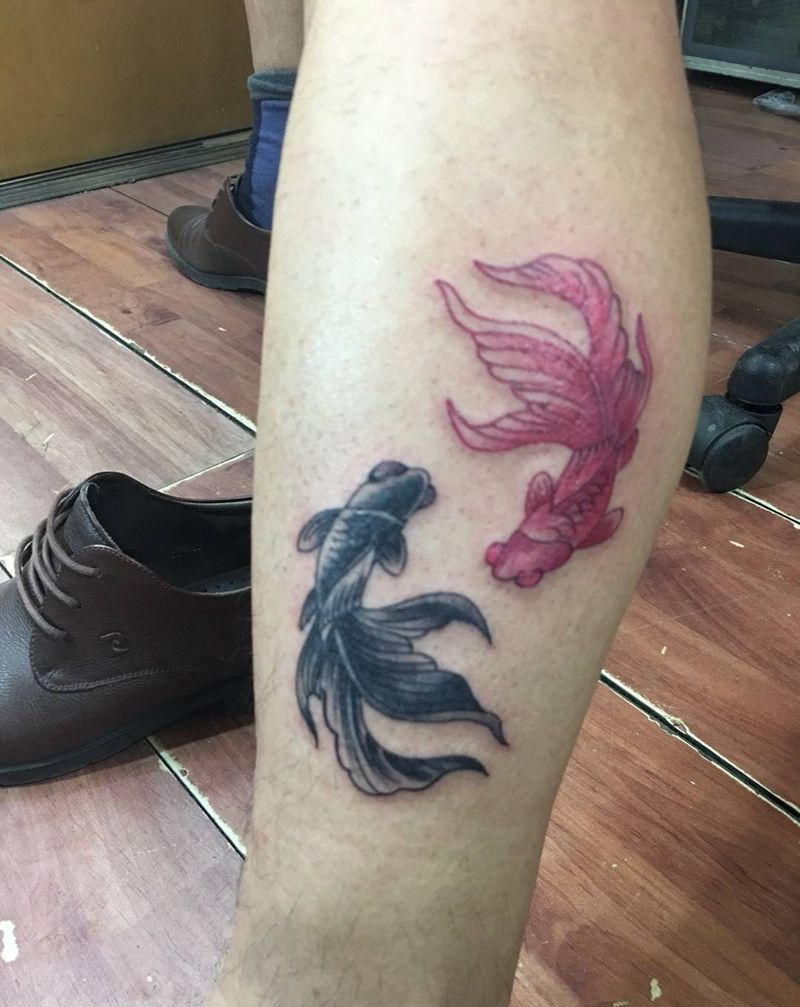 写意金鱼一对纹身图片