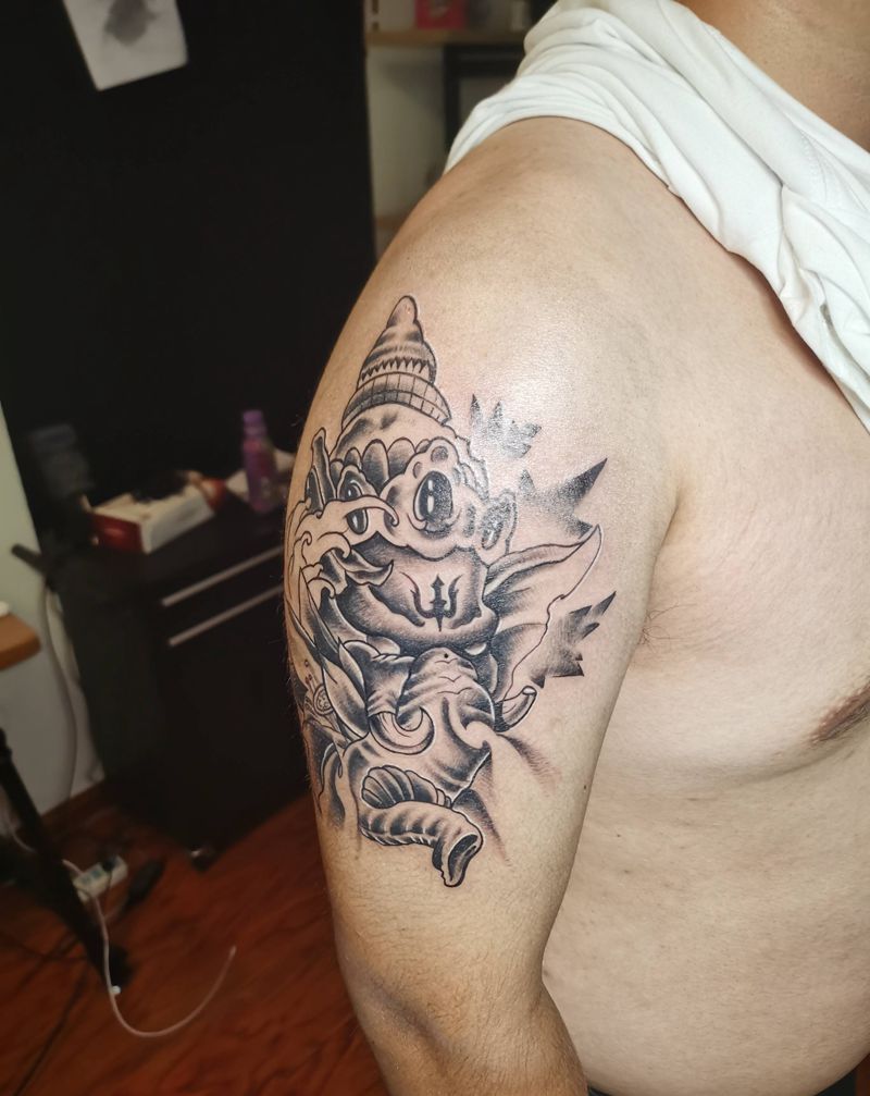当前位置: 首页 >山东省青岛市纹身店-Y. F. X. H Tattoo. 1987纹身图案>象神纹身图片_手臂纹身图案
