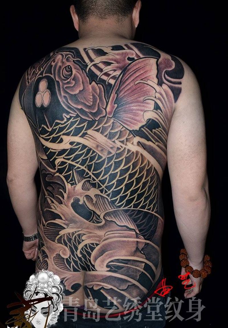当前位置: 首页 >山东省青岛市纹身店-青岛艺绣堂纹身纹身图案>锦鲤纹身图片